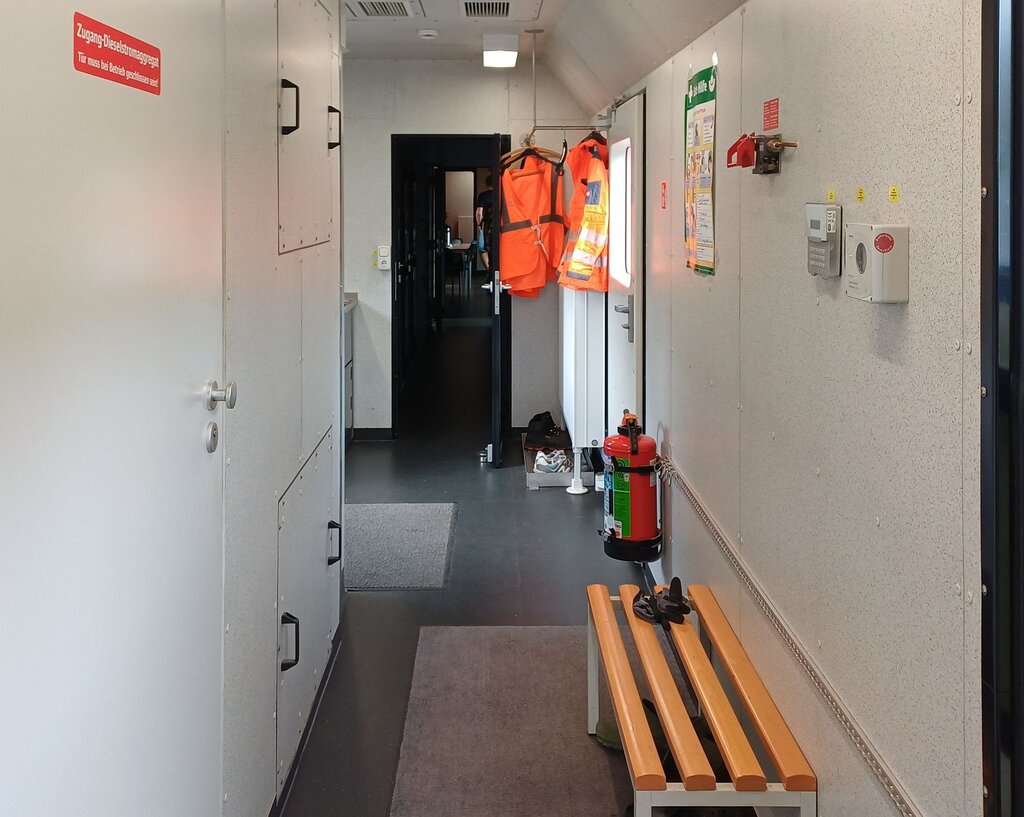 Innenansicht des DB Netz Notfalltechnik Kranzugbegleitwagen 99 80 9370 103-0 D-DBMP vom Kranzug Leipzig.