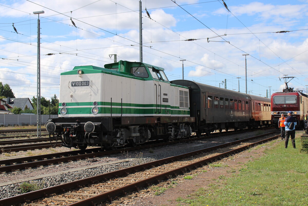 Zur Mittagszeit erreichte die DB Museum V100 003 mit dem DPE 88291 aus Magdeburg Hbf das Festgelände.