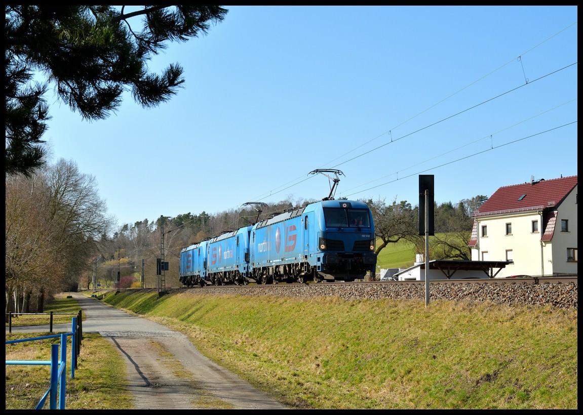 Gegen 10-11 Uhr sollte eigentlich der Kesselzug gen Chemnitz fahren, also erstmal auf Fotostellensuche, in Hohenstein-Ernstthal gleich wieder umgekehrt, die vermutete Wiese war leider ein aufgeweichtes Feld, dann nach St. Egidien, hier erstmal Grünschnitt betrieben, jedoch waren die Loks immer noch nicht unterwegs, 11.14 dann kam eine Meldung, Loks ab Leipzig. Also bin ich nach Schönbörnchen gefahren, da der Kesselzug mit 159 445 gen Vohburg abfahrbereit gemeldet wurde, es dauerte aber auch hier, bis alle Fensterzüge durch waren.